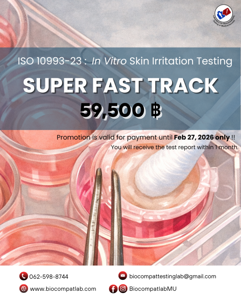 ประชาสัมพันธ์ Promotion พิเศษถึง 31 มีนาคม 2569 สำหรับการทดสอบการระคายเคืองต่อผิวหนังในหลอดทดลอง In Vitro Skin Irritation Test ตามมาตรฐาน ISO10993:23