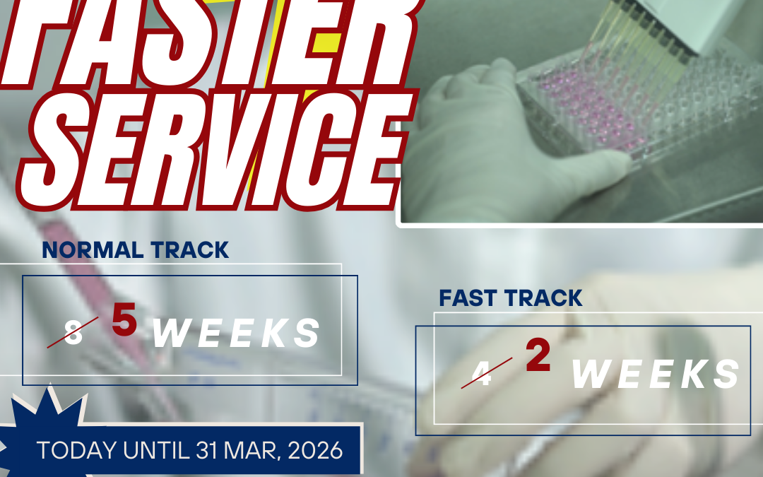 ท่านจะได้รับบริการที่เร็วกว่าเดิม โดยจะได้รับผลภายใน 5 สัปดาห์สำหรับ Normal Track และ 2 สัปดาห์สำหรับ Fast Track หลังจากที่ได้ยืนยันการชำระเงิน